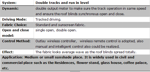 應(yīng)用場所:彎曲、傾斜或水平的中小型遮陽場所,如酒店、咖啡廳等玻璃頂。